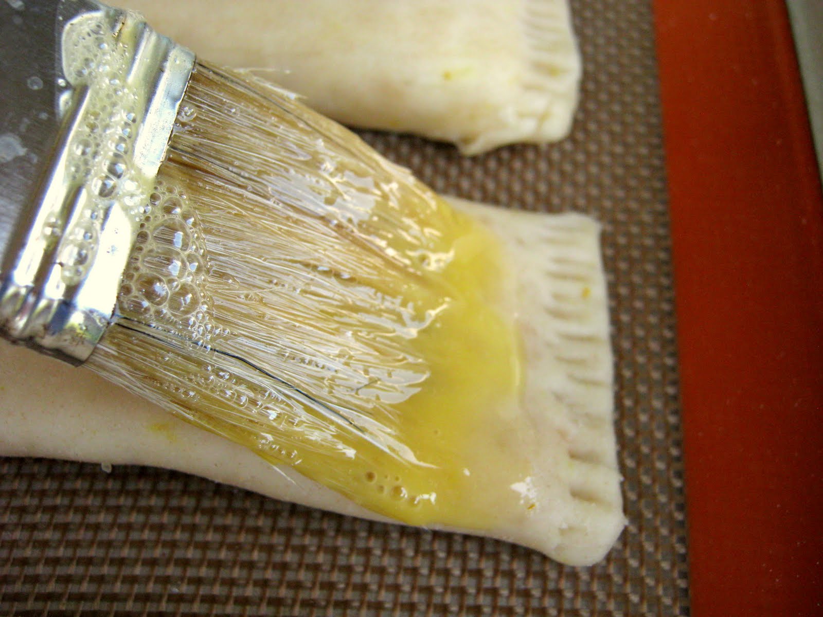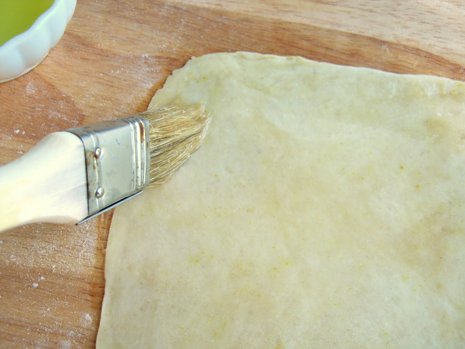 Αλείφετε με πινέλο, περιμετρικά τις άκρες της ζύμης.